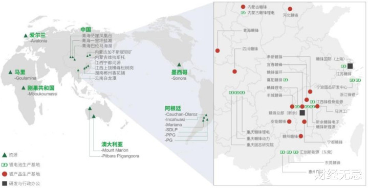 赣锋锂业生产基地、研发中心、锂资源分布图